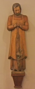 Die Josefsfigur ist weitgehend im Holzton belassen; hier sind auch die Meißelschnitte noch gut zu erkennen. Josef hält in den gefalteten Händen eine Säge, die aufrecht zu seinen Füßen steht. Die Säge ist sicher als Hinweis auf die Zimmermannstätigkeit von Josef zu verstehen. Vor der Säge sprießt eine Lilie aus dem Boden, die auf Maria, die reine Jungfrau verweist.