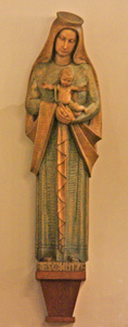 Der linke Seitenaltar ist der Gottesmutter, der Patronin der Kirche, geweiht; der rechte Seitenaltar dem heiligen Josef. Beide Figuren wurden im Jahr 1935 geschaffen. Sie sind aus Lindenholz und jeweils 1,85 m hoch. Nach Aussage des Künstlers sind sie "leicht farbig behandelt, so dass der Farbton des Holzes und der Meißelschnitt noch sichtbar sind." Die Marienfigur ist in der Oberfäche feiner gearbeitet und vor allem beim Gewand farbiger gehalten. Die Madonna hält Jesus auf ihrem Arm, der die Arme ausgebreitet hat. Diese Geste hat eine doppelte Bedeutung: Jesus heißt uns willkommen, zugleich deutet diese Haltung auf die spätere Kreuzigung hin.
