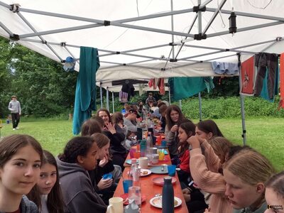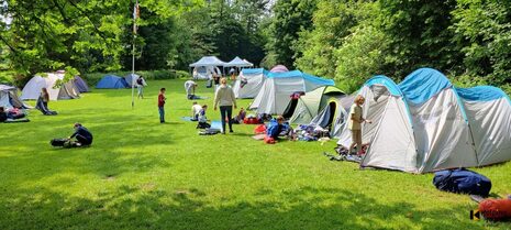 Vom 6. bis 9. Juni war es endlich wieder so weit. Mit 62 Teilnehmenden machten wir uns auf den Weg ins Pfingstzeltlager und reisten gemeinsam ins antike Rom. Genauer gesagt in ein kleines unbeugsames Dorf, das sich wacker gegen die Römer wehrte. Unser Auftrag: Asterix und Obelix dabei helfen, die geheimen Zutaten für ihren Zaubertrank zu finden. Was nach Abenteuer klang, wurde eines. Und zwar in jeder Hinsicht. Schon beim Aufbau war klar: Das Wetter meint es dieses Jahr nicht ganz leicht mit uns. Immer wieder zogen kräftige Regenschauer über den Platz, und wer keine Gummistiefel und Regenjacke dabei hatte, war schnell gut beraten, sich unter einem der großen Pavillons zu verschanzen. Zum Glück regnete es meist nachts, sodass wir tagsüber trotzdem viel draußen erleben konnten. Und kaum ließ sich die Sonne blicken, trocknete alles in Windeseile – so schnell, dass es in der Regenjacke bald schon wieder zu warm wurde. Doch statt uns vom Wetter unterkriegen zu lassen, sind wir als Lagergemeinschaft umso stärker zusammengewachsen. Am Samstag wurde in Workshops kreativ gespielt und gewerkelt: Wir gestalteten gemeinsam unsere Lagerfahne, bastelten farbenfrohe Mosaiktöpfe, stellten römische und gallische Kostüme her, spielten Brettspiele und tobten in der Sporthalle beim Fußballspielen. Dabei entstanden nicht nur viele schöne Dinge, sondern auch neue Freundschaften und eine spürbare Gruppendynamik. |
