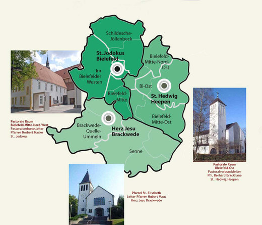 In Bielefeld wird voraussichtlich Norbert Nacke, bisher Pfarrer in der Gemeinde St. Jodokus, die Leitung übernehmen. Zunächst leitet er nun den Pastoralen Raum Nord, der neben der Innenstadtgemeinde auch die Gemeinden Dornberg, Gadderbaum; Jöllenbeck und Schildesche umfasst. Für den Osten der Stadt übernimmt Bernhard Brackhane aus Heepen die Leitung. Der Süden hat sich bereits zu der neuen Pfarrei St. Elisabeth zusammengeschlossen. Das Pastorale Team leitet Hubert Maus. Die römische Kirche bemüht sich, mit ihren organisatorischen Veränderungen einerseits dem Rückgang an Gläubigen, gegenwärtig gibt es 55.000 Katholiken in Bielefeld, und dem Fehlen von Mitarbeitern zu begegnen. Andererseits soll so auch dem veränderten Lebensalltag der Menschen entsprochen werden. „Viele Menschen sind auf der Suche nach Religion, fühlen sich nicht an eine Gemeinde gebunden oder wollen dies auch nicht", sagt Brackhane. Der Zusammenschluss soll es einfacher machen, die Mitarbeiter nach speziellen Kenntnissen und Fähigkeiten einzusetzen. „In der kleinen Gemeinde muss jeder alles machen. Wenn wir gemeinsam arbeiten, kann jeder das tun, was er am besten kann:" Fussy berichtet von einem Weihnachtsmahl für Arme und Obdachlose. Dazu melden sich immer wieder zahlreiche Helfer. „Einige davon sehe ich das ganze Jahr nicht mehr." Es gebe viele pastorale Orte außerhalb der Kirchengebäude, wo Menschen sich treffen. Das Ehrenamt, in dem der Einzelne sich über viele Jahre für eine Sache einsetzt, weiche der Hilfe bei einzelnen Projekten, meint Hofnagel. „Das fordert auch von uns Veränderung."